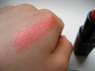 Die Farbe ist aber ganz und gar nicht so, wie ich mir das vorgestellt habe, bzw. wie das auf der Seite präsentiert wird. In der Beschreibung des Produkts steht nichts von einem Schimmer (hätte ich mal die Kundenmeinungen gelesen...). Der Schimmer ist auch sehr stakt und richtig rosa (kommt auf meinen Bildern leider auch nicht gut raus). Schade, ich hatte mich so auf einen schönen koralligen(?) Lippenstift gefreut...