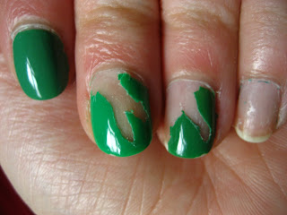 Als ich den Nagellack dann ab machen wollte, war es doch anders, als ich es mir vorgestellt hatte. Wie man auf dem Bild sehen kann, konnte ich nicht in einem Stück abpulen, sondern immer nur da, wo ich eben auch mit dem Fingernagel drunter war.