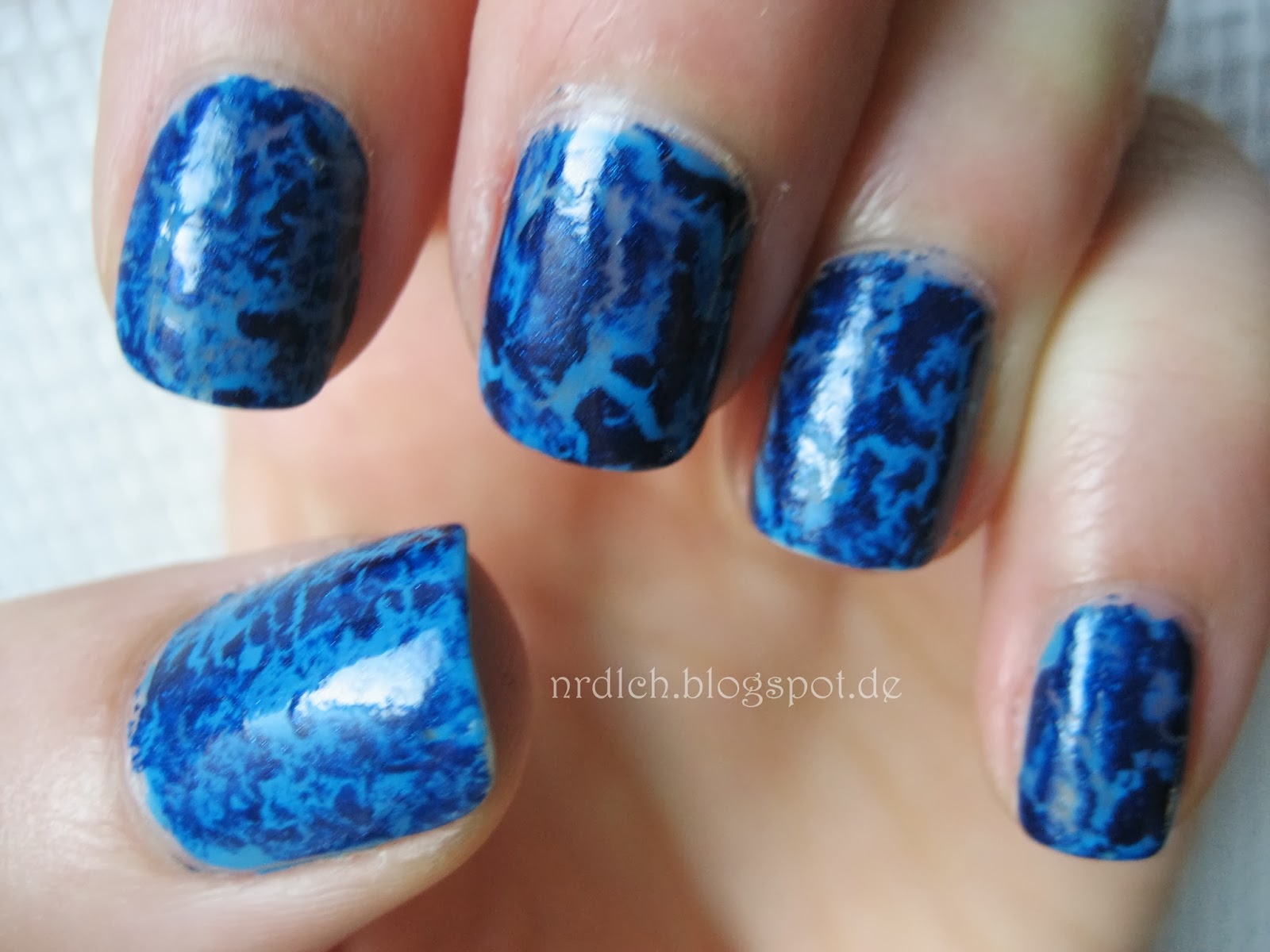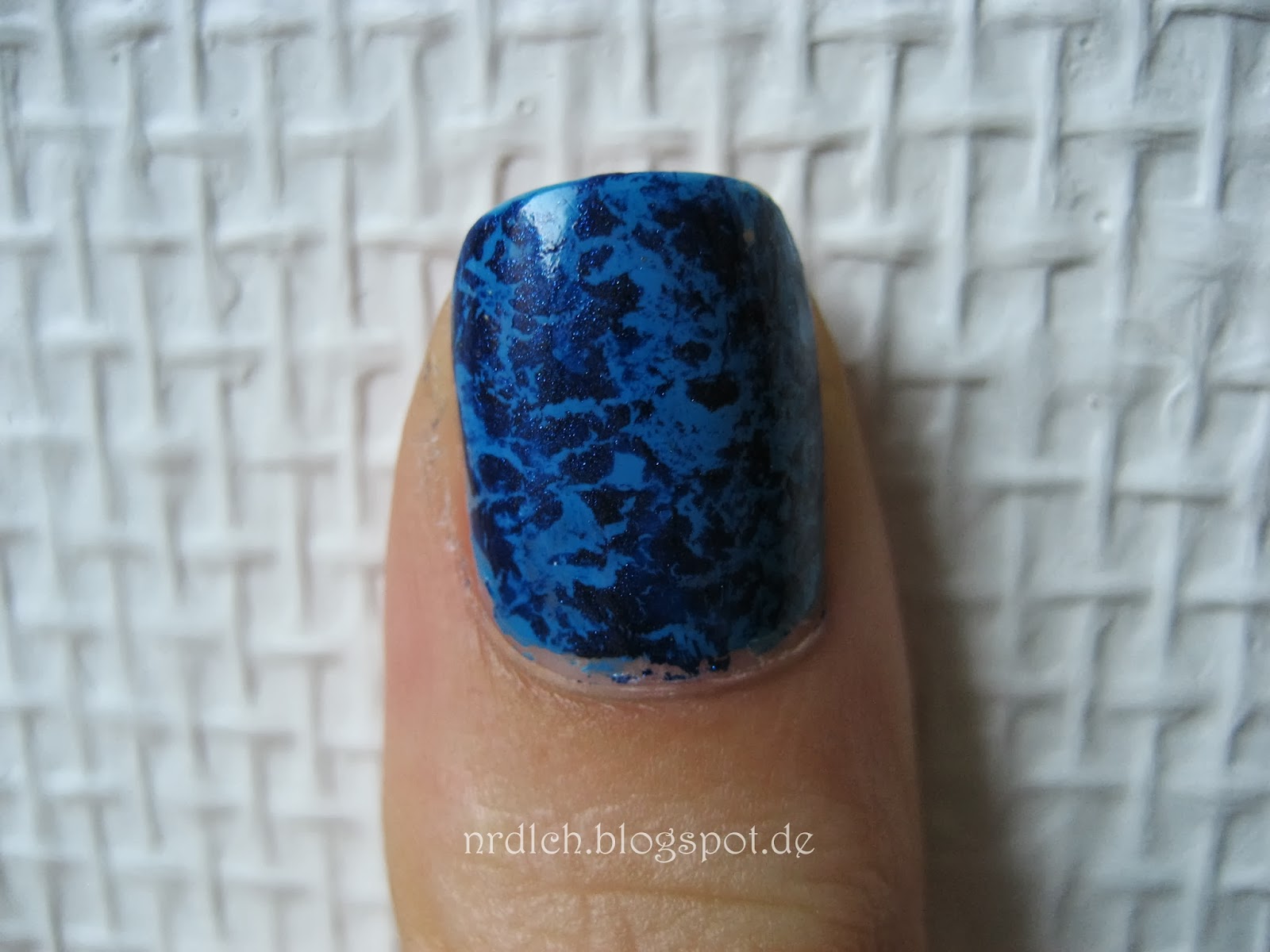 Als Untergrund habe ich 320 unforgattable von p2 genommen, ein strahlendes Türkis. Crack me! blue habe ich dann mit einem Kosmetik-Schwamm aufgetupft.