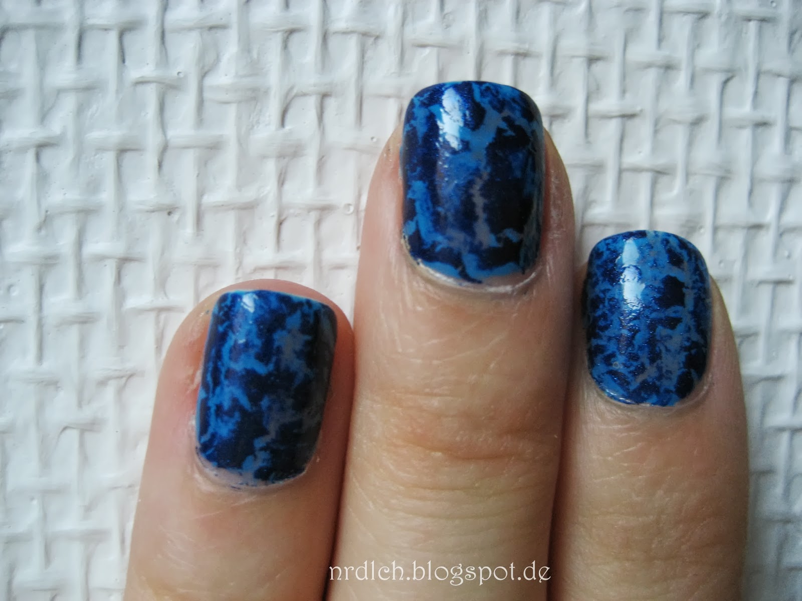 Da ich so ungeduldig war, habe ich nur eine Schicht Türkis lackiert und diese leider nicht komplett durchtrocknen lassen. An einigen Stellen sieht man, dass ich beim Tupfen leider wieder was von dem Türkis weggenommen habe.